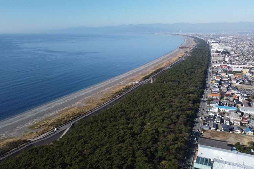 Senbon Matsubara is a beautiful forest made up of tens of thousands of pine trees, stretching around 10 km along the sea from the Kano River estuary to Tagonoura. Views of the evergreen pines, set against a snow-capped Mt. Fuji and dyed red by the sun setting over Suruga Bay are why Senbon Matsubara has been recognized as one of Japan’s top 100 beachside pine forests.